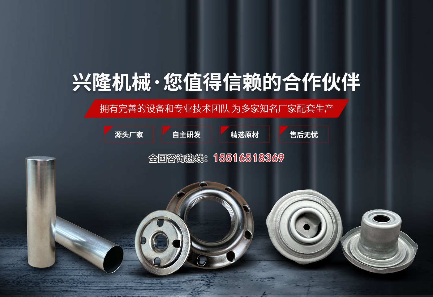 新鄉市興隆機械制造有限公司成立于2004年,是一家專門生產濾清器配件、電池配件、冰箱配件等金屬沖壓件的機加工企業。公司位于新鄉市紅旗區小店鎮,緊鄰京珠高速、107國道,占地23000m2,于2004年通過了質量管理體系認證?! 」粳F有職工170余人,其中技術人員36人,專職檢驗人員6人,擁有多條全自動沖壓生產線、自動落料機、自動清洗涂油機、自動釬焊爐、1-500噸各種型號沖床及配套先進設施設備100余臺套?! 」局饕a品為車用濾清器的法蘭、封圈、端蓋、活門、骨架、支架、殼體等金屬沖壓件、拉伸件;電池鋼殼、蓋帽等電池配件。年產濾清器配件、冰箱配件等1億多件,電池配件2.6億余只。電池鋼殼規格型號:18650、26650、2/3AA、AA、AAA型等系列。  金屬沖壓件、拉伸件主要為中航集團新鄉平原濾清器有限公司、中航集團第116廠、武漢平東濾清器、安徽澳格、定遠億利等廠家配套生產?! ∥夜臼侵泻郊瘓F新鄉平原濾清器有限公司的供應商,占其濾清器配件總量的60%以上,近年來,國內汽車行業快速增長,產銷兩旺,汽車配件銷售形勢較好,我公司產品一直供不應求,前景廣闊?! 」臼冀K堅持質量鑄品牌、誠信贏市場、科技創輝煌的質量方針,加強管理創新和體制創新,不斷引進先進技術及設備,擴大品種數量,提高產品質量,逐步實現機械化和自動化,增強企業核心競爭力。秉承品質與服務的經營理念,竭誠為新老客戶提供產品與服務,大限度滿足廣大客戶的需求。真誠期待與新老客戶合作共贏、攜手發展!  公司地址:新鄉市紅旗區小店鎮西關。金穗大道與京珠高速新鄉站、107國道新鄉站上下路口 交匯處東側、新鄉物流園區大門向東300米路南。由新鄉汽車東站乘60路公交車或新鄉火車站乘126路、196路、43路公交車小店路口下。